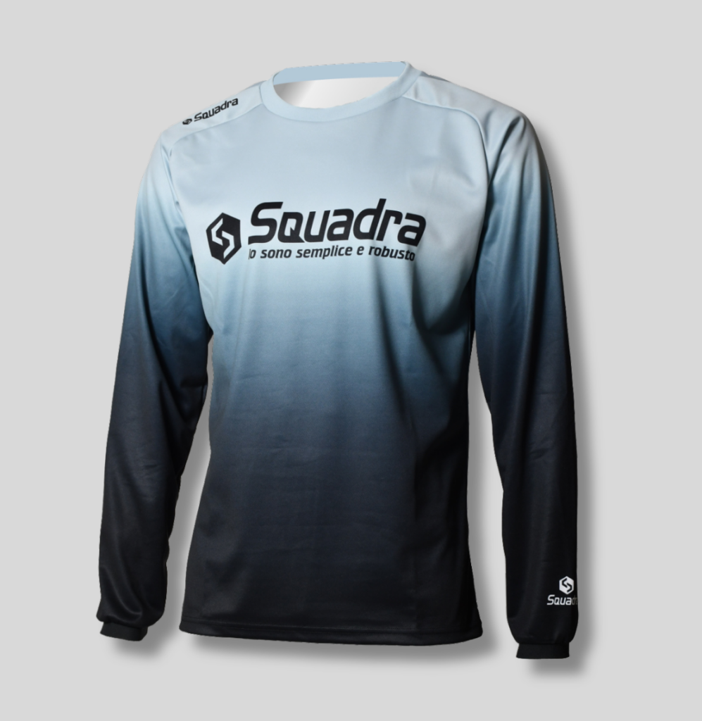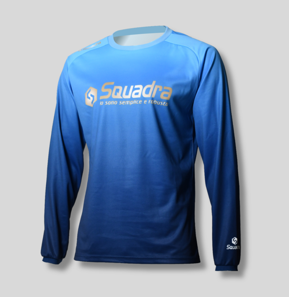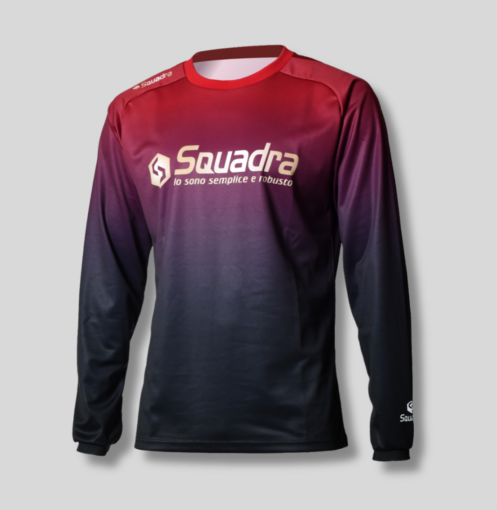 長袖のプラクティスシャツが新登場。 スクアドラらしい昇華転写プリント技術を活かした美麗なグラデーショングラフィックが特徴。まだまだ厳しい暑さが続く頃ですが、屋内でのトレーニングや日焼け防止などにも最適。ぜひお手に取ってご覧くださいませ。