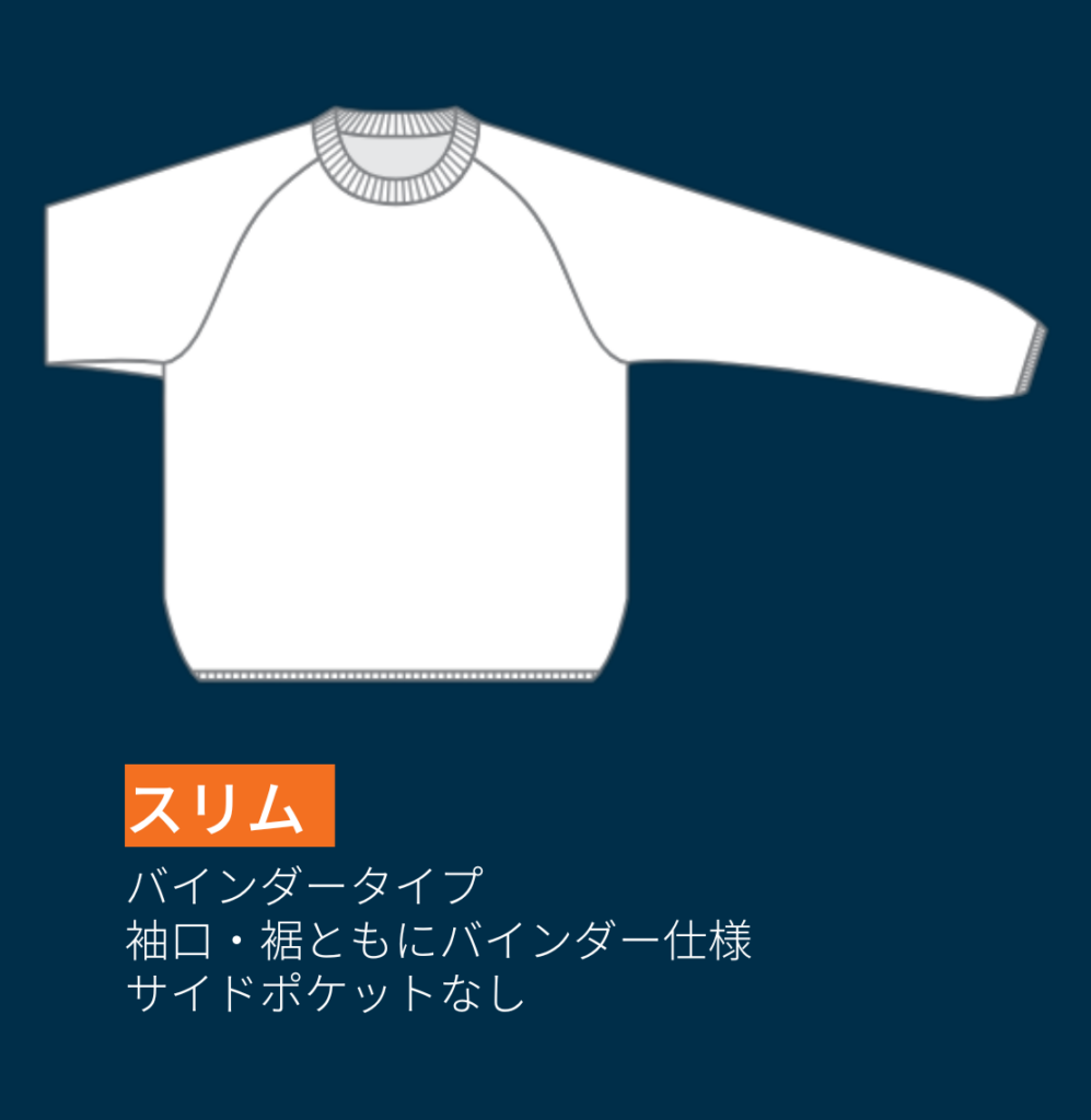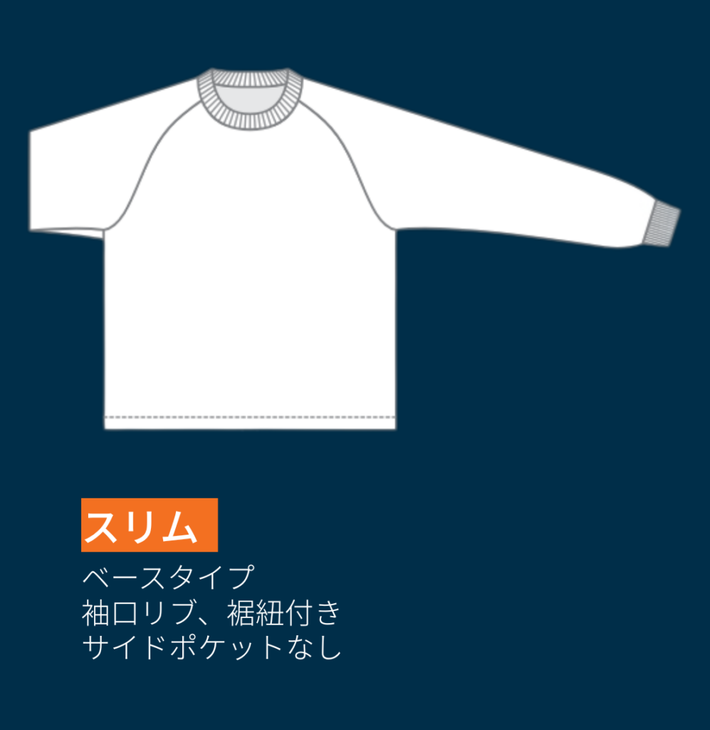 2.シルエットをレギュラー、スリムよりお選びいただけます。また、袖口等に仕様もお選びいただけます。