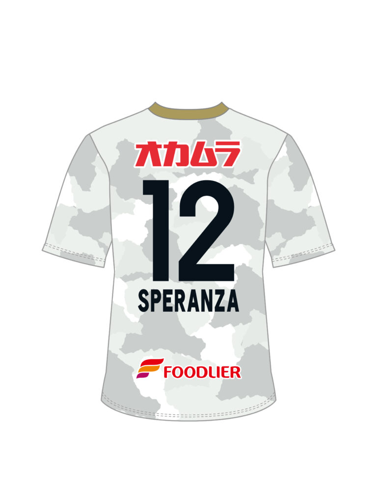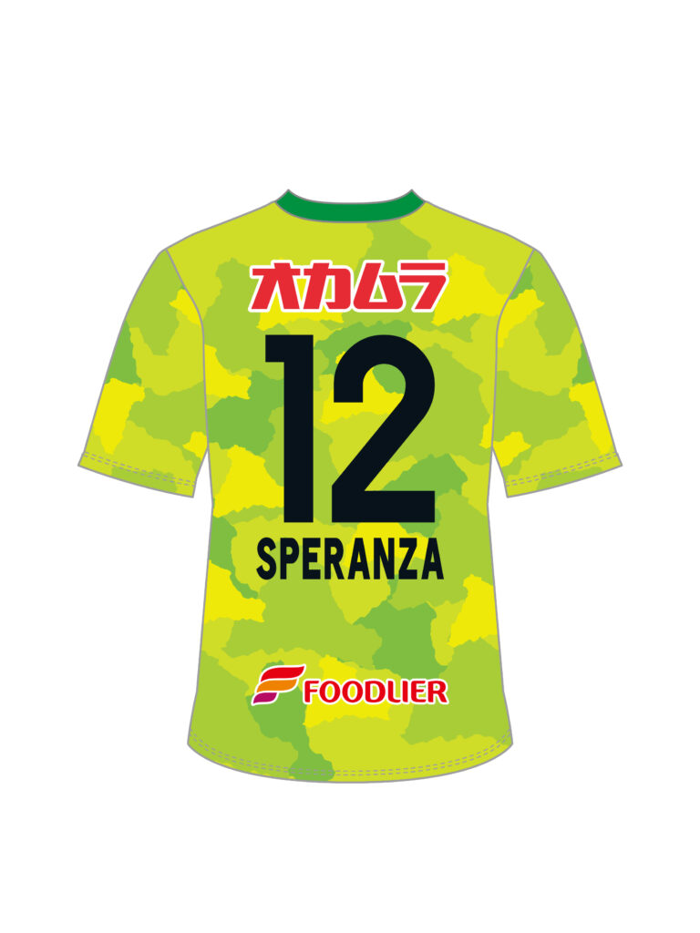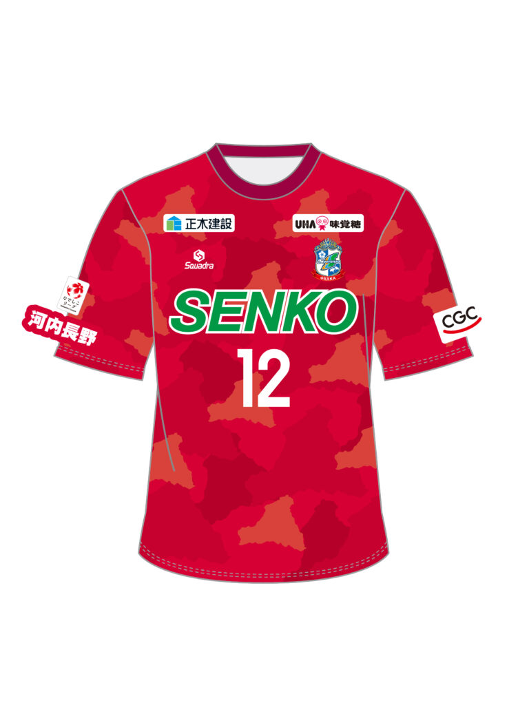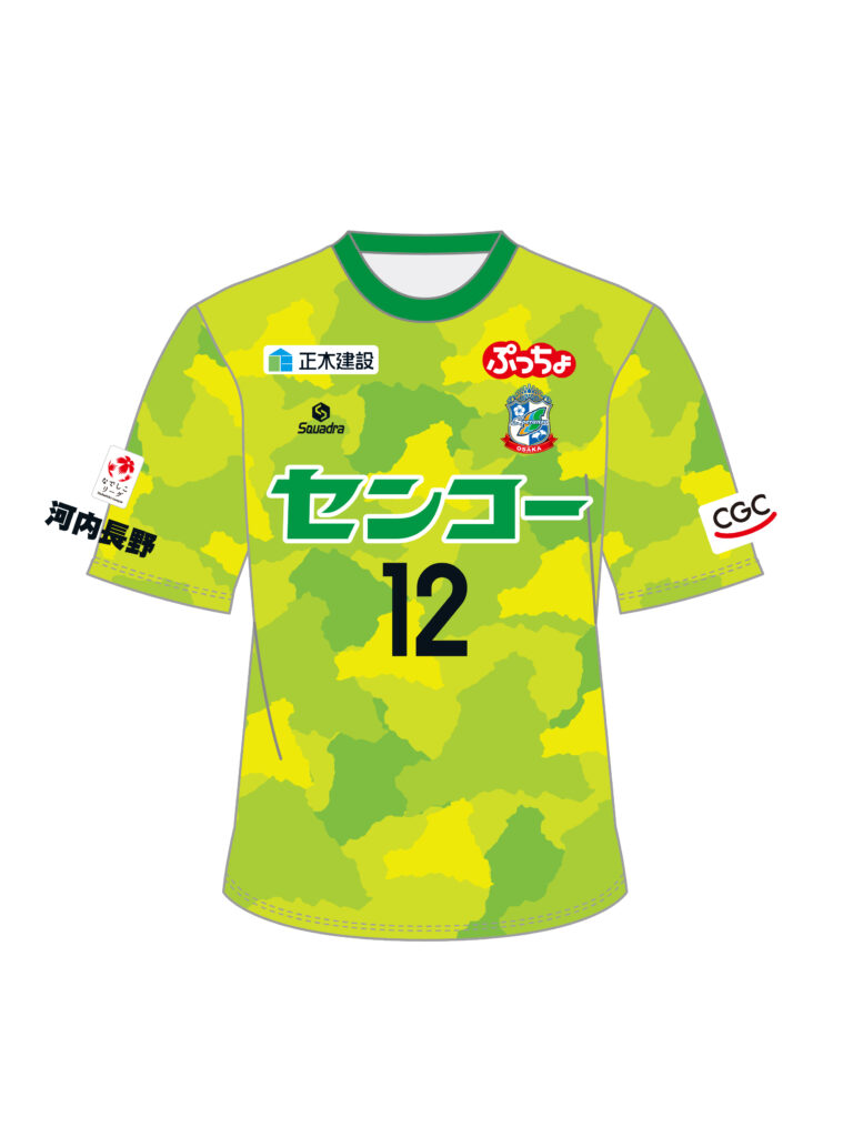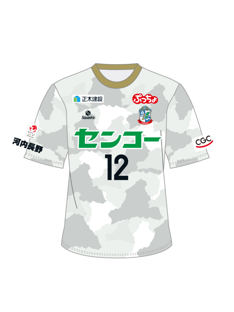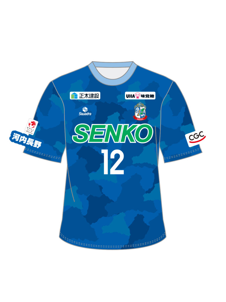 デザインには、ホームタウンである大阪府河内長野市の形をモチーフに、多彩な色で構成した迷彩グラフィックを採用。昇華プリントならではの発色を活かした仕上がりとなっています。