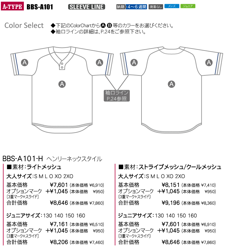 【ゲームシャツ】ヘンリーネックシャツ BBS-S100-H