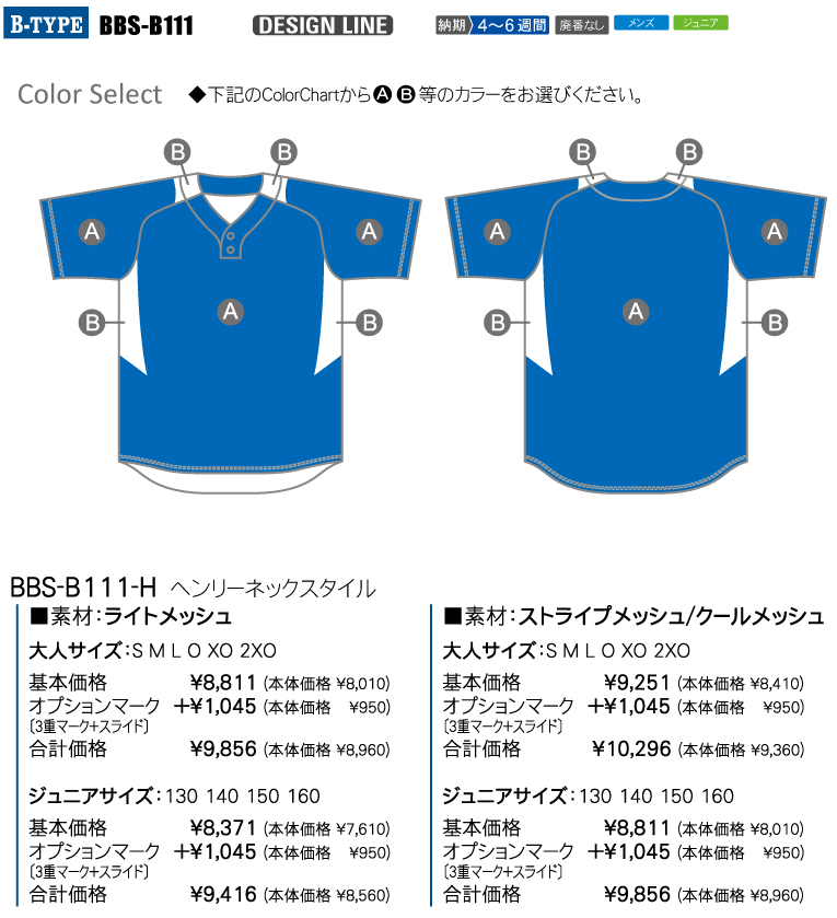 【ゲームシャツ】ヘンリーネックシャツ BBS-B110-H