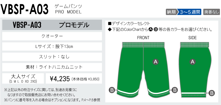 【ゲームパンツ】メンズプロモデル VBSP-A02