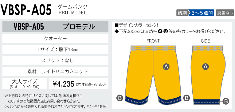 【ゲームパンツ】メンズプロモデル VBSP-A03