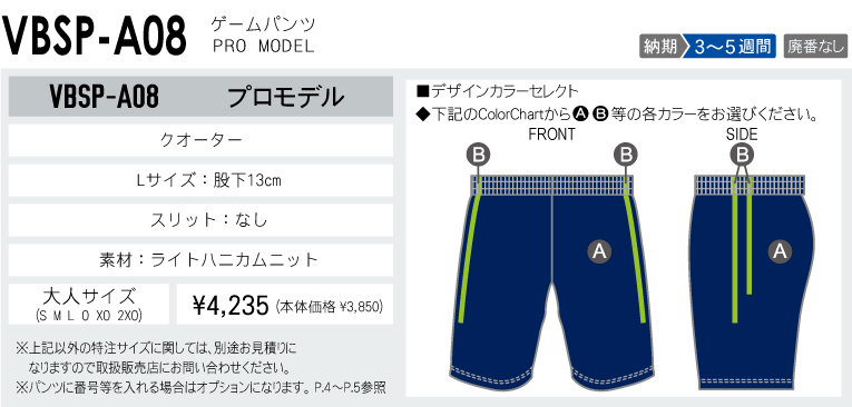 【ゲームパンツ】メンズプロモデル VBSP-A01