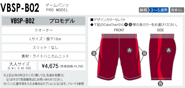 【ゲームパンツ】メンズプロモデル VBSP-A01