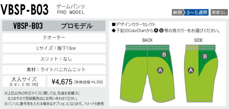 【ゲームパンツ】メンズプロモデル VBSP-A03