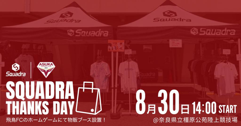 飛鳥FCのホームゲームにて物販ブース設置のお知らせ
